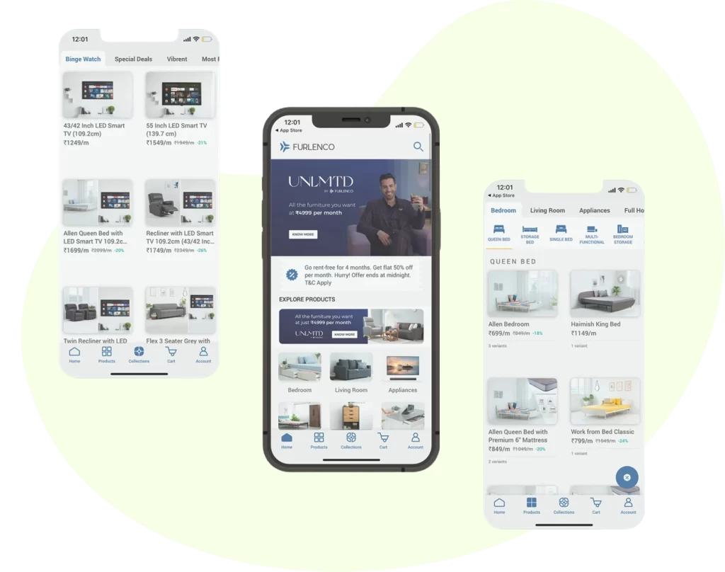 During a 2 week course of Testing Interactions in the 2nd year, the whole class of 8 students was led by the Lead Product Designer of the company Furlenco, online furniture renting company. This project was assigned to us in order to find a solution and minimize the difference of no. of orders and no. of searches between the website and the app.